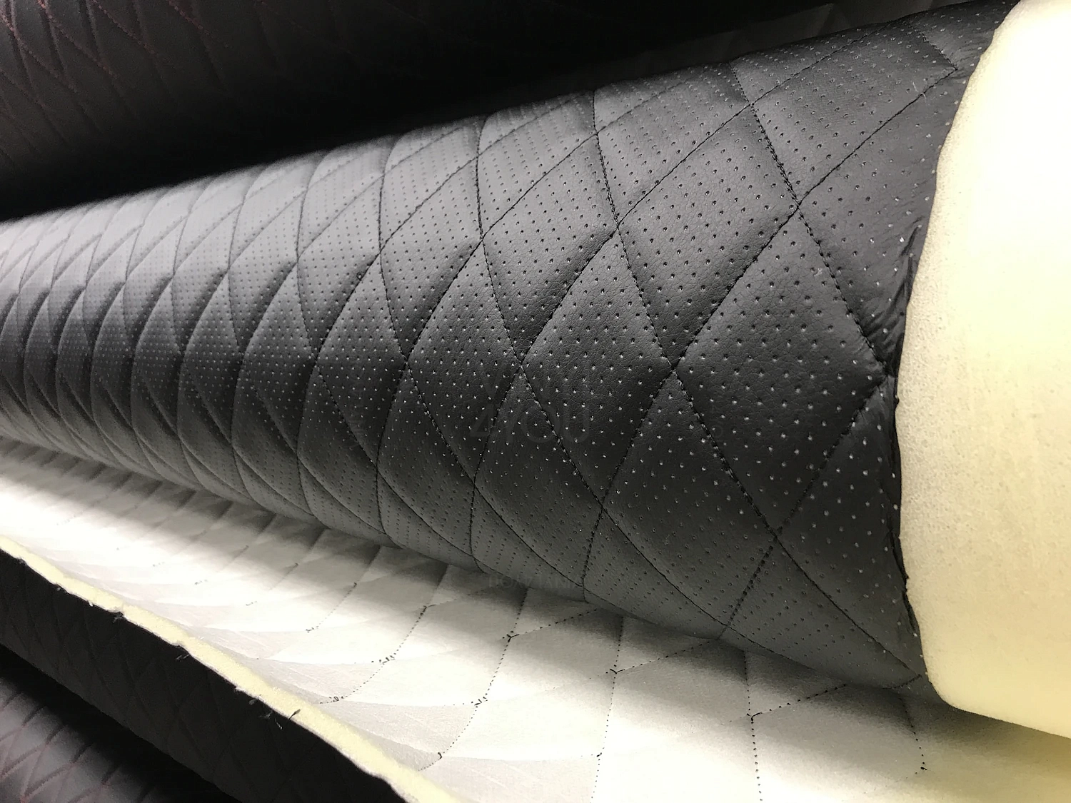 Экокожа стеганая перфорированная Ромб Черная с Черной строчкой